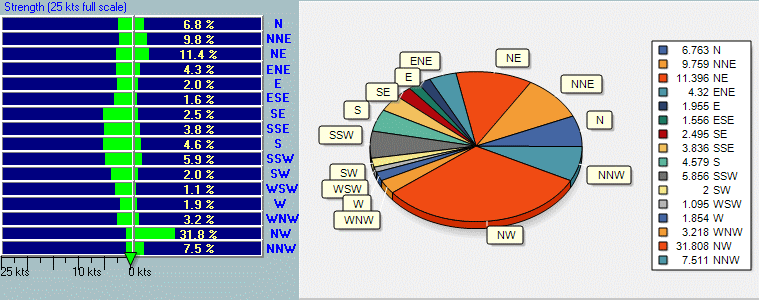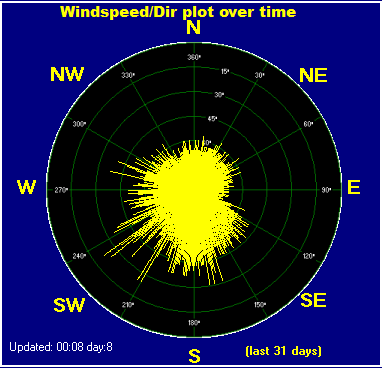 Maximum windspeed = 11.1 kmh from 063°(ENE) on day 06 at time 15:08
