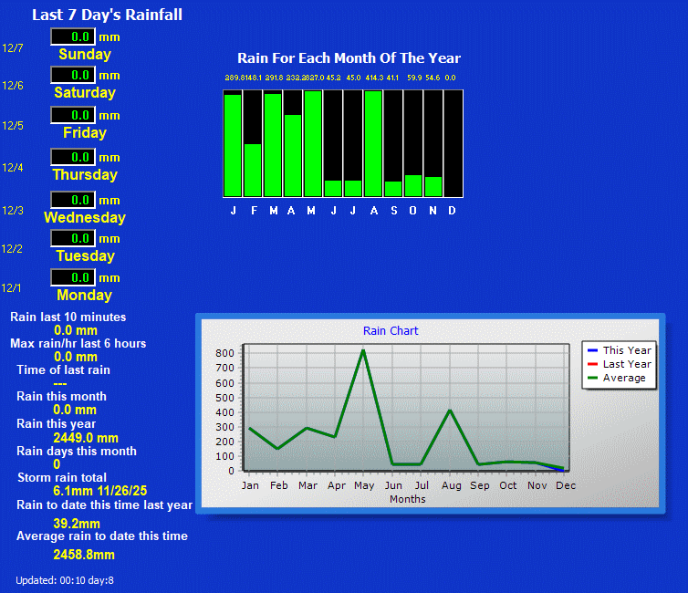 Record daily rain: 10.7 mm at: 16:29 on: 23 Nov 2025