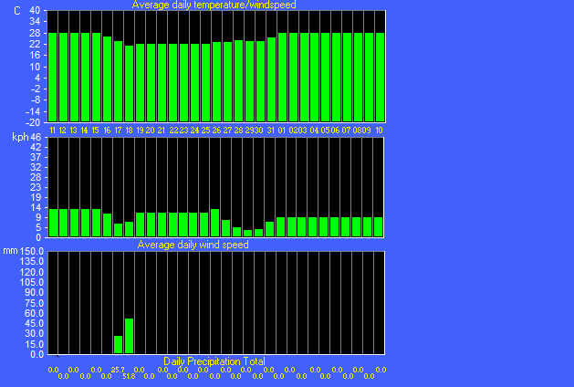 Maximum temperature = 28.4°C on day 11 at time 00:06