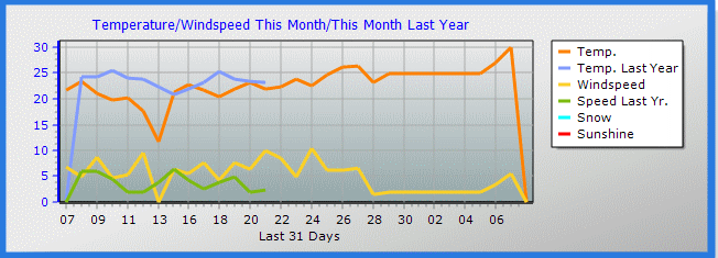 Maximum temperature = 30.4°C on day 06 at time 15:09